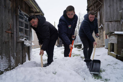 На Гомельщине молодежь в рамках акции БРСМ помогает пожилым белорусам в уборке снега