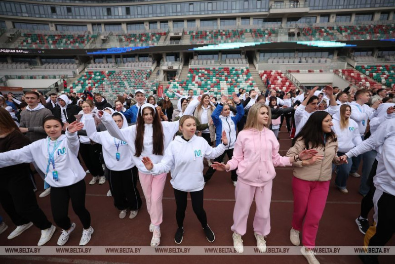Олимпийские чемпионы провели зарядку для 3,5 тыс. студентов на минском стадионе "Динамо"